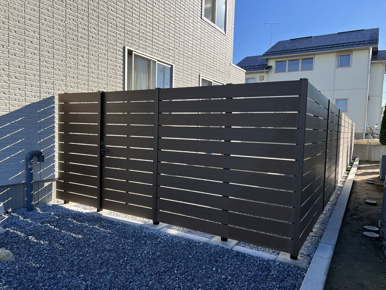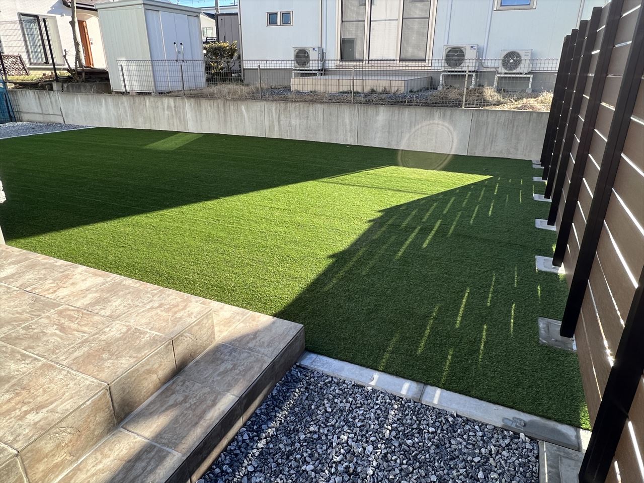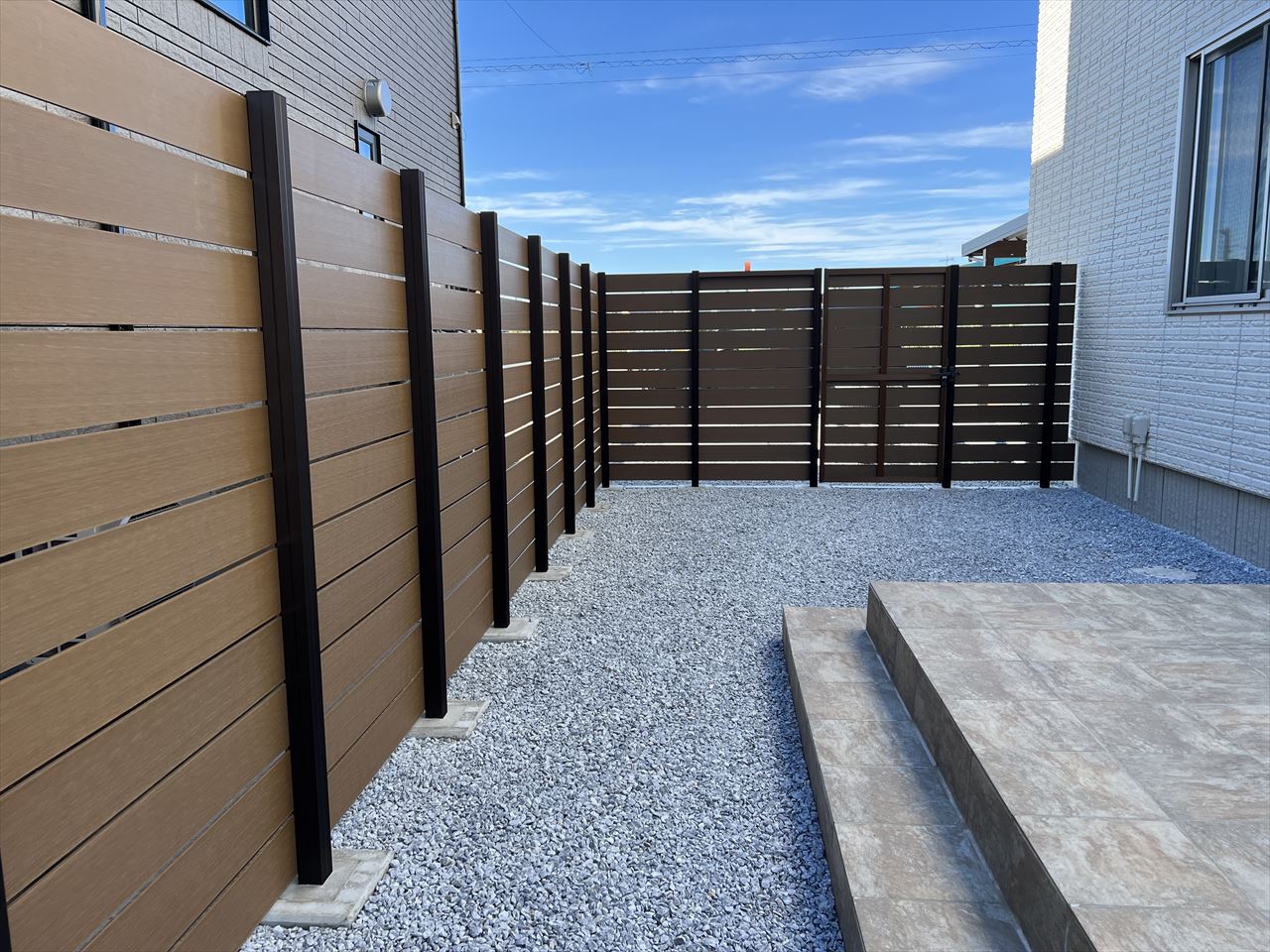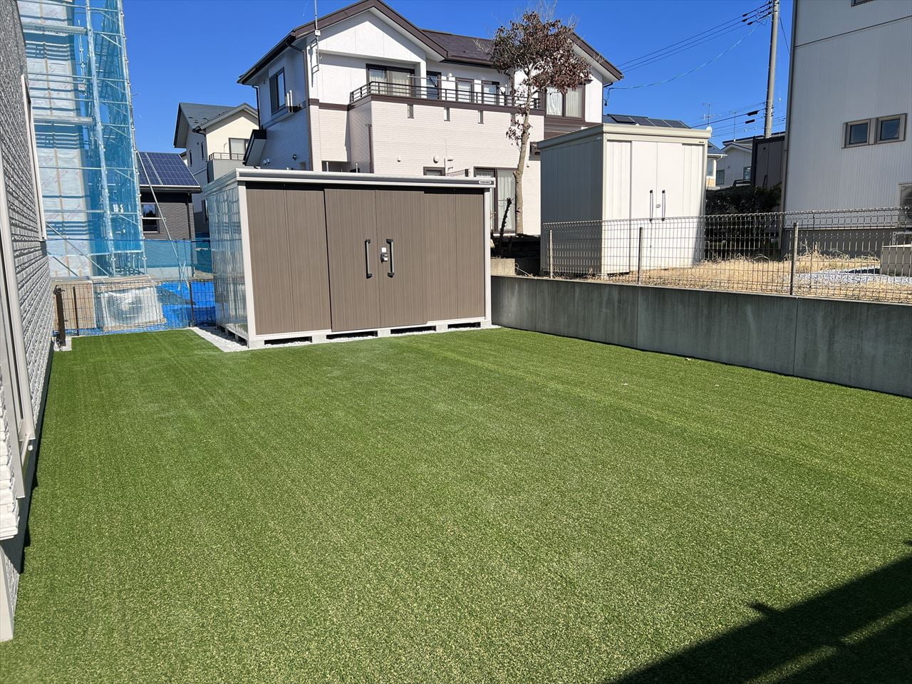 | 施工内容 | 目隠しフェンス、人工芝、メッシュフェンス、砂利防草シート、物置、タイヤストッカー |